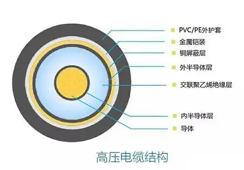 ----高壓線由內至外可分為導體—內半導體層—絕緣層—外半導體層—金屬鎧裝層;