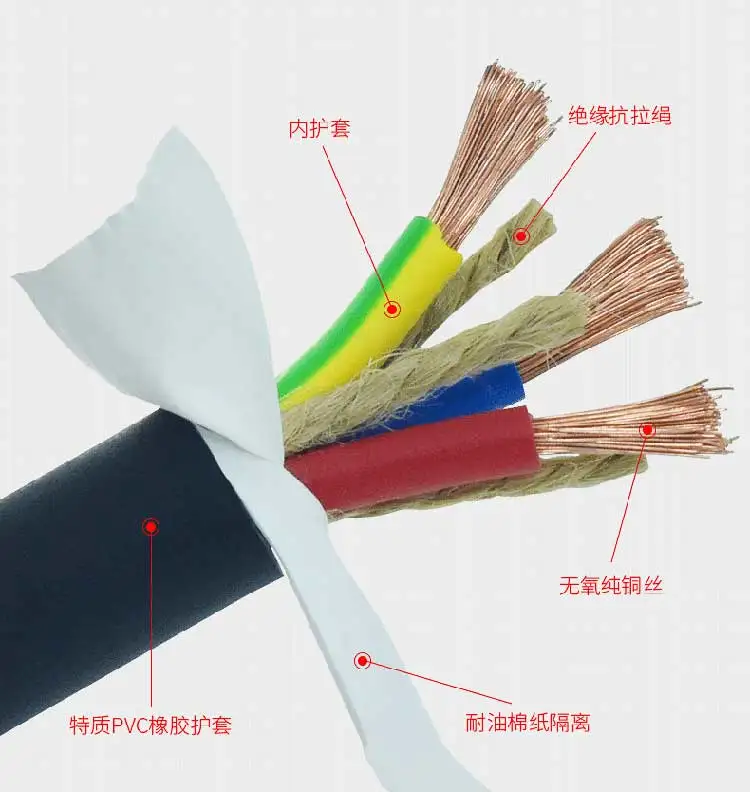 ----防水防油:特制的耐油防護套能適應各種油質、潮濕、高磨損的工作環境,具有良好的耐熱、耐冷、防水防油效果;